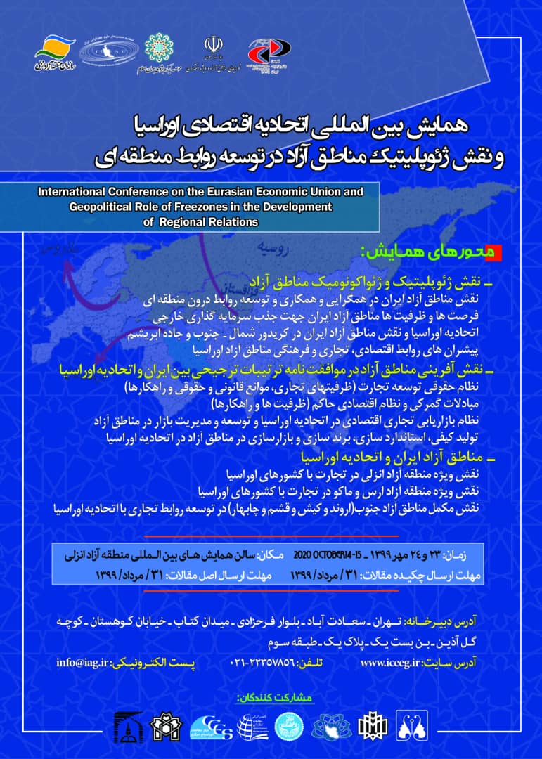 همایش بینالمللی «اتحادیه اقتصادی اوراسیا و نقش ژئوپلیتیک مناطق آزاد در توسعه روابط منطقهای» با همکاری مؤسسه آینده پژوهی جهان اسلام و سازمان منطقه آزاد انزلی و با مشارکت دانشگاه گیلان در 27 آبان ماه سال جاری برگزار می شود.